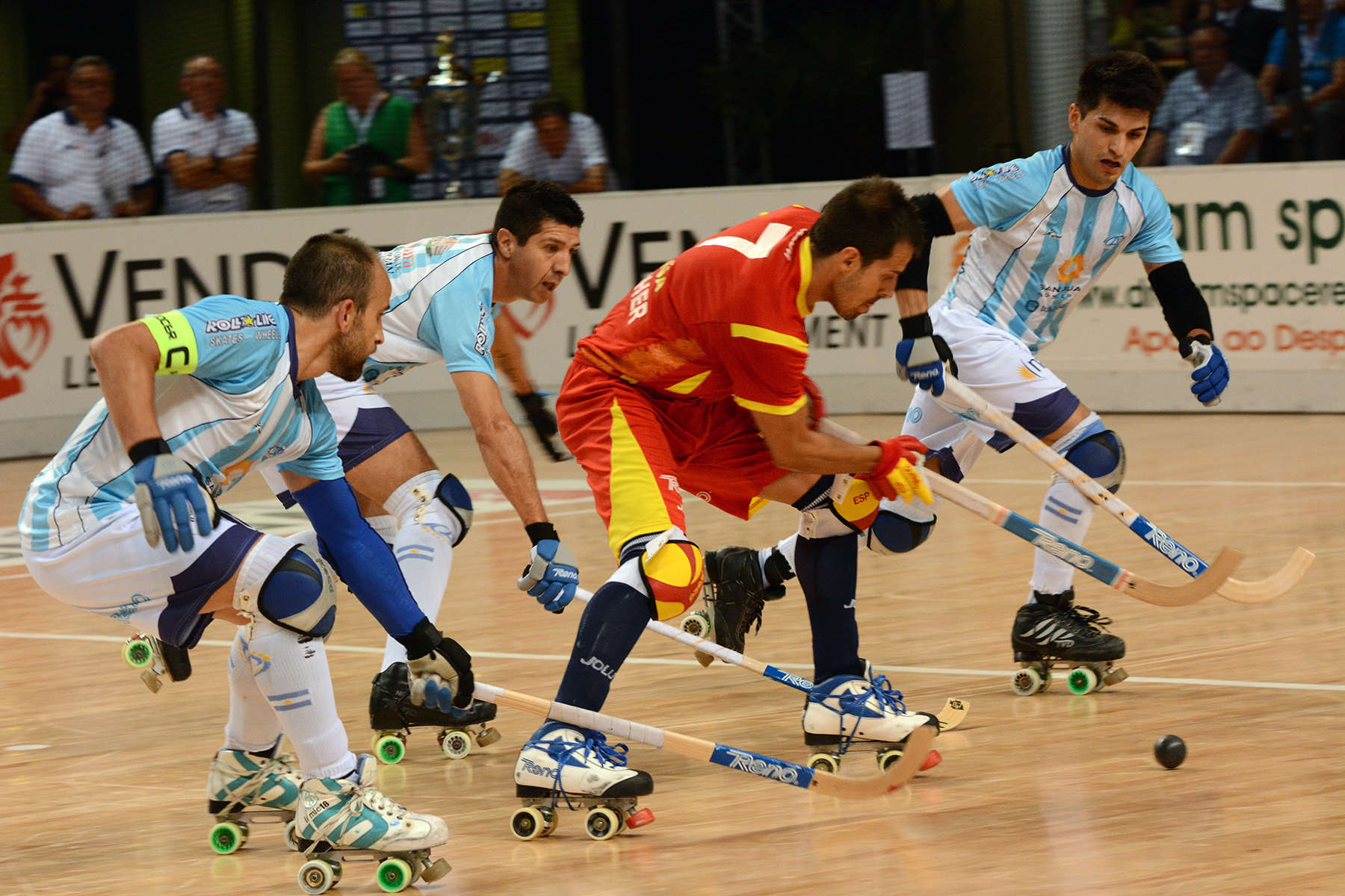 Hockey sobre patines En el hockey sobre patines utilizan un palo similar al de hockey sobre hielo, protecciones y patines de hockey sobre patines. El hockey sobre patines se juega en casi 60 países en todo el mundo. Se juega en un rodillo de superficie seca. Dos equipos de 4 jugadores y un portero luchan para marcar más goles que el otro equipo.